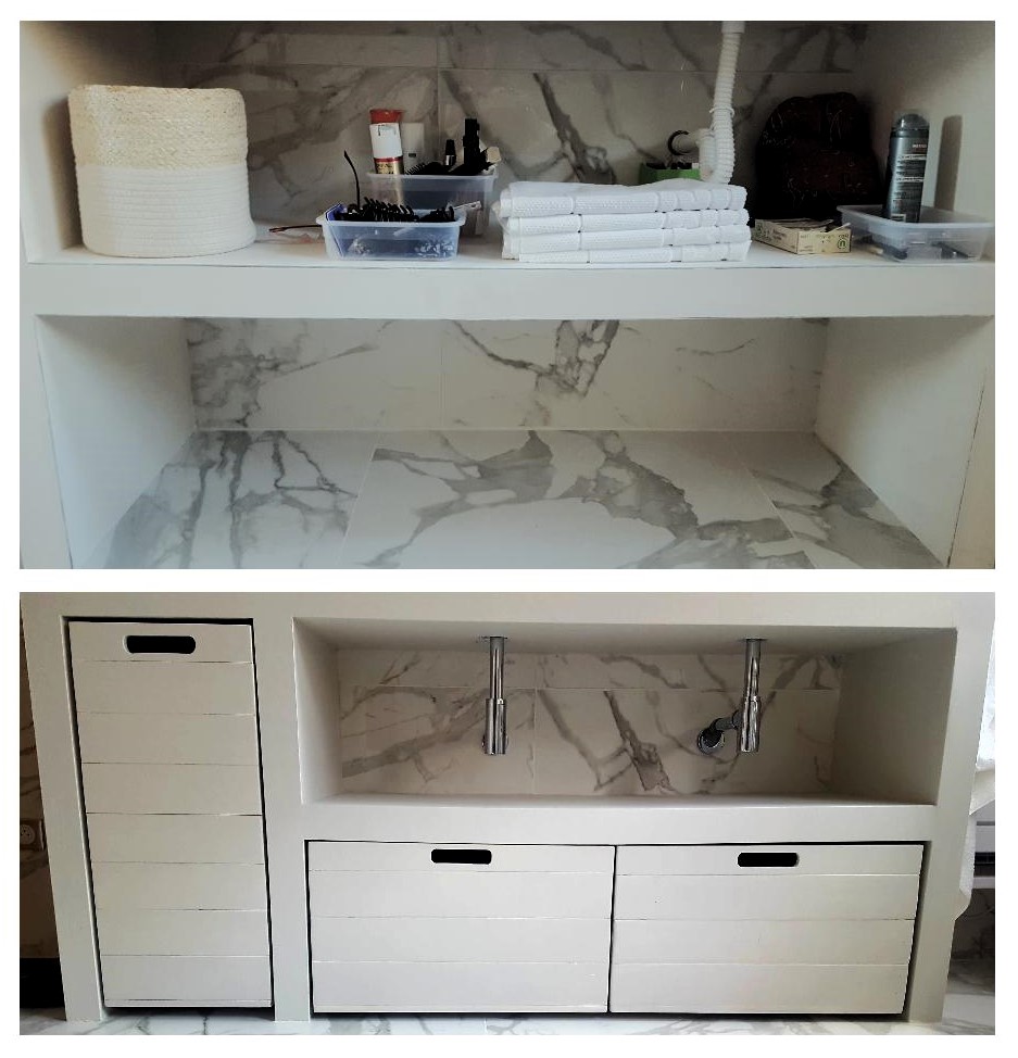 Fabrication et Finition Personnalisée – Mobiliers de SDBDétail – Parement mural – ExtérieurRénovation – Détail Volet –